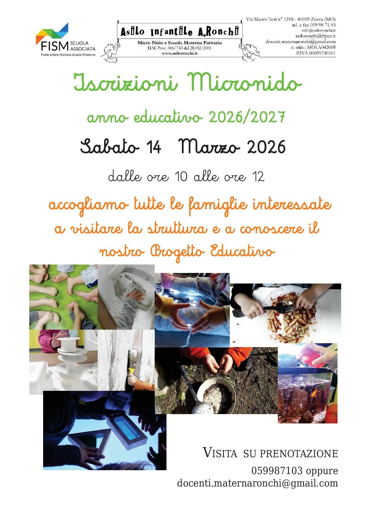 ASILO INFANTILE A. RONCHI - VIA MAURO TESI, 1218 - 41059 - Zocca (Modena) Italia - C.F. - P.IVA 00699740361 - Email: info@asiloronchi.it - Telefono: +39 059 98 71 03